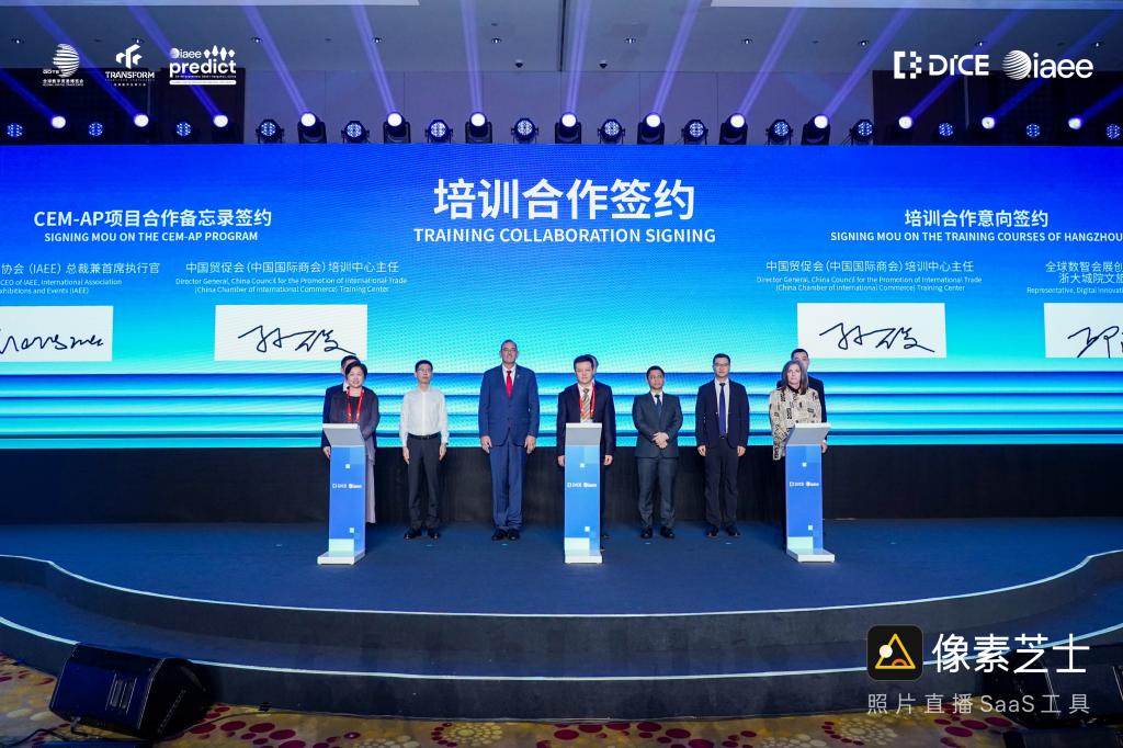 会上,全球数智会展创新中心与中国贸促会培训中心签署战略合作备忘录,双方将建立长期稳定的战略合作关系,通过联合开展人才培养项目、共享优质教育资源、共建实训基地等多种协作方式,加强会展人才培养,助力杭州会展经济高质量发展。浙大城市学院国际文化旅游学院院长邱汉琴教授代表学院签约。