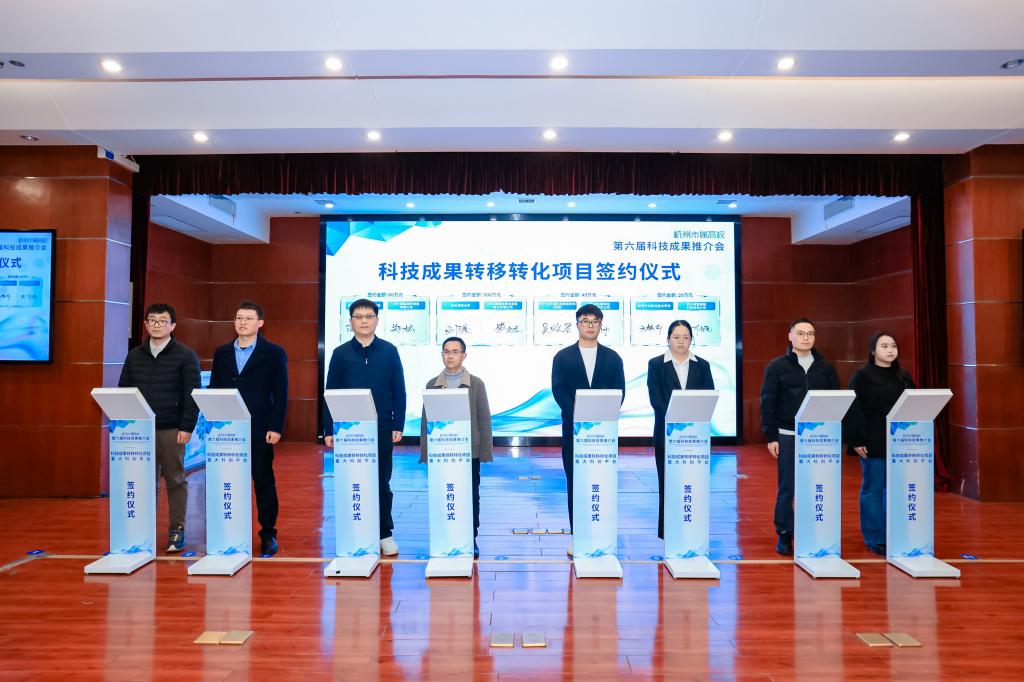杨波在致辞中表示,学校秉持“为杭州办一所好大学”的初心使命,始终与城市发展同频共振,主动融入杭州“创新活力之城”建设,全面推动科研创新和成果转化不断提能升级,“十四五”期间取得显著成果。下一步,学校将积极参与“‘杭甬’双城记城市大学技术转移转化联盟”和“市属高校线上科技成果库”的建设,努力打通从“书架”到“货架”的转化通道,让更多实验室里的“智慧种子”开花结果。