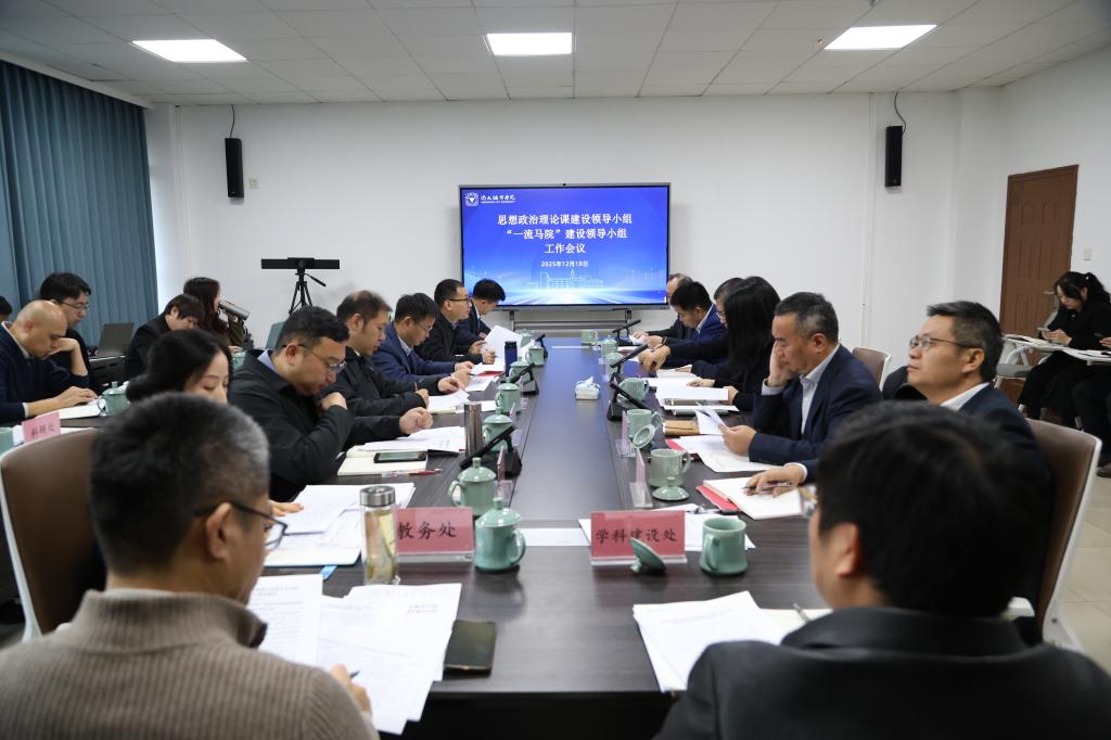 校党委委员、副校长金滔,党委副书记叶桂方,思想政治理论课建设领导小组、“一流马院”建设领导小组成员单位负责人参加会议。