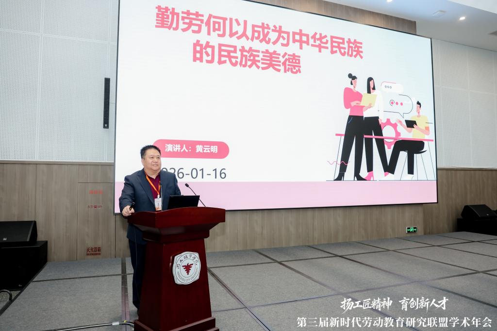 2026年1月16日,第三届新时代劳动教育研究联盟学术年会在杭州举行。年会由浙大城市学院主办,杭州新时代劳动教育研究联盟、杭州市劳模工匠协会协办。来自全国各地的近100名劳动教育专家学者、劳模工匠代表齐聚一堂,围绕“扬工匠精神、育创新人才”这一主题展开深入研讨。