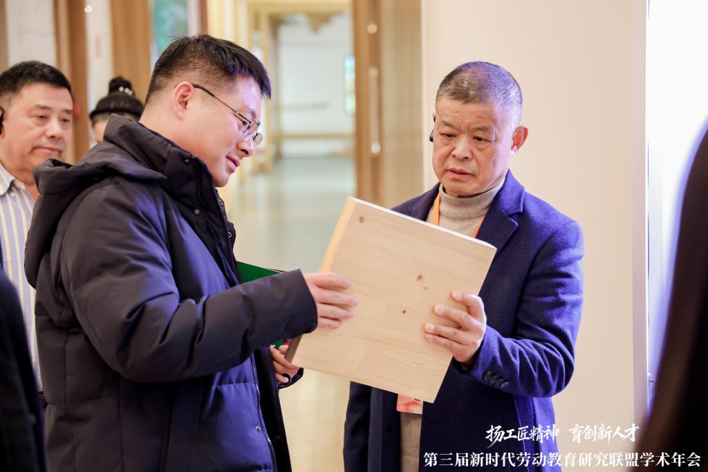 年会还组织了劳动教育实践基地的现场参观。在浙大城市学院工程交叉创新实践中心,激光雕刻、3D打印等项目展现了学校以创新创造深化劳动教育的鲜活场景;在杭州千年舟集采贸易有限公司,传统榫卯工艺在现代木结构智造流程中焕发新生,拓展了产教融合推进劳动教育的新路径。