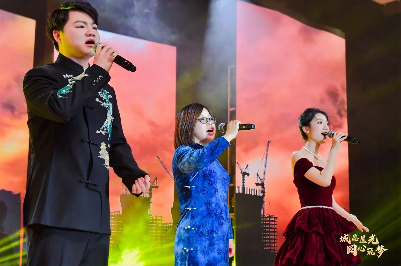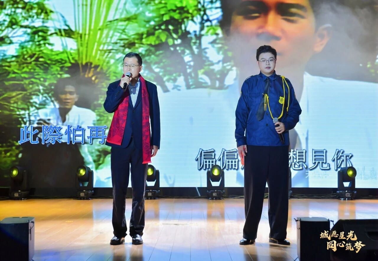 全体校领导联袂登台,齐声唱响《明天会更好》 用动人歌声送上新春祝福。台下手机闪光灯汇成星光海洋,掌声与欢呼声经久不息。
