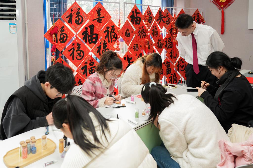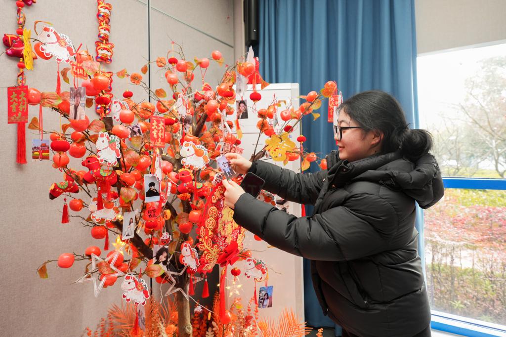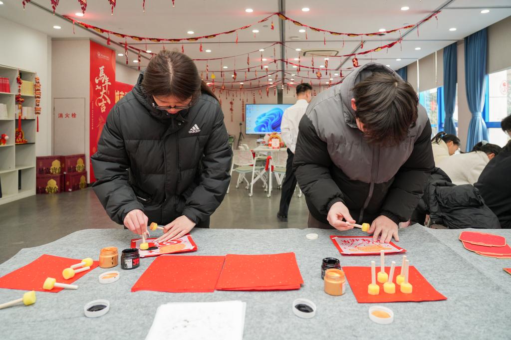 活动现场,师生们一起提笔写“福”、拓印吉祥图案、体验精巧的非遗螺钿工艺,并将承载着新年期盼的照片挂上“愿望树”。以此传递美好祝福,在互动中感受中华优秀传统文化的魅力。