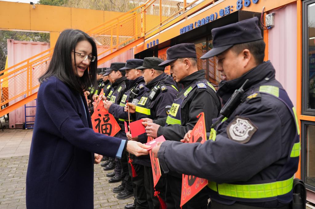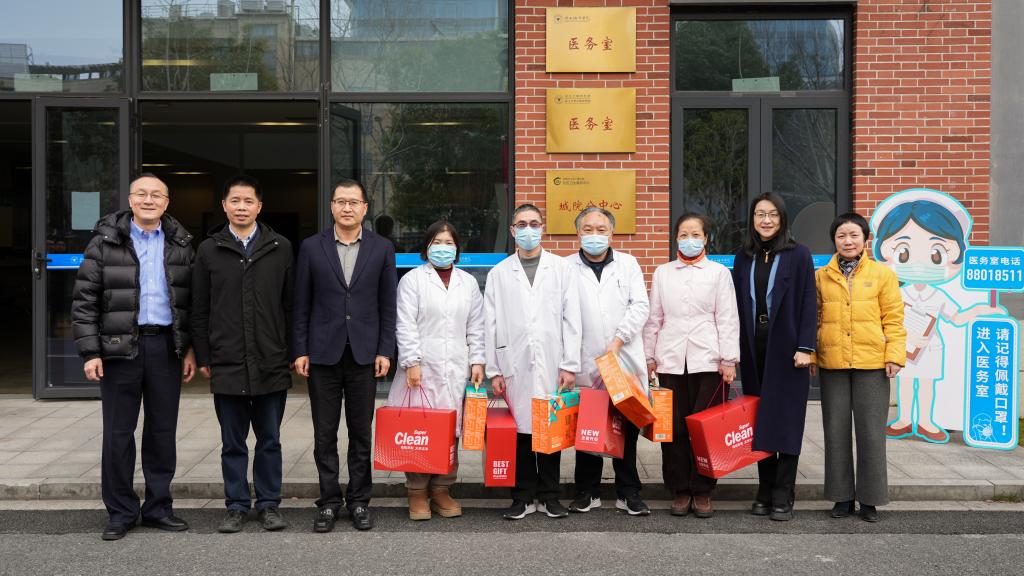 当天下午,董悦、杨波等校领导走访慰问了寒假期间坚守一线的食堂、学生公寓、物业、安保、医护人员,亲切询问大家的工作与生活情况,对他们假期期间的辛勤值守表示感谢,并送上新年慰问品。
