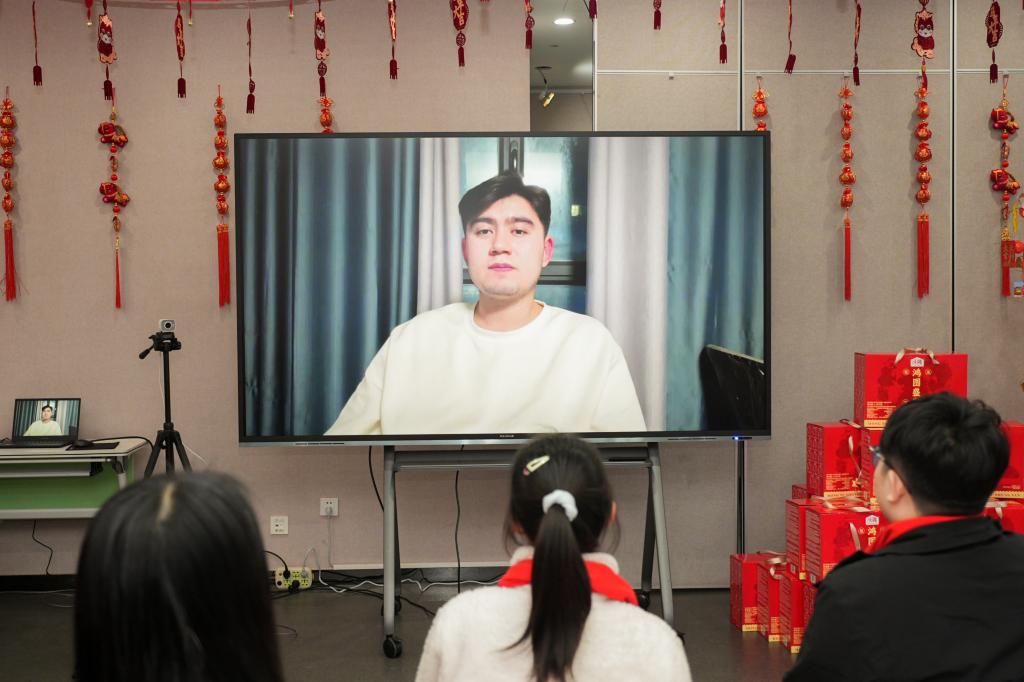 “跨时空团圆”视频连线的屏幕两端师生们与家人互报平安、倾诉思念,温暖的话语感染了整个会场。