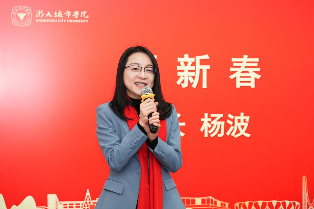 杨波向坚守岗位、留校奋斗的每一位城院人表示衷心感谢。她说,“正是大家的共同努力,学校才能在过去的岁月中稳步前行、不断突破。新的一年,让我们保持奋斗的姿态,快马加鞭,携手并肩,朝着建设高水平一流应用型大学的目标继续迈进!”