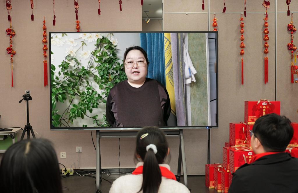 慕贤楼楼长彭静在视频连线中对婆婆说“今年留校学生多,我要坚守岗位,不能回去陪您过年了,您在家要照顾好自己……”