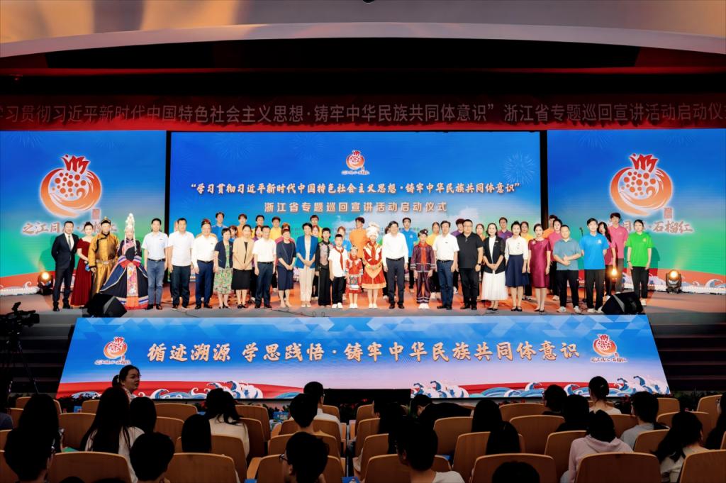 承办“喜迎二十大·铸牢中华民族共同体意识宣讲计划进校园”、“铸牢中华民族共同体意识”浙江省专题巡回宣讲等活动,让宣讲“活”起来、“实”起来;引入大型舞台剧《三千孤儿入内蒙》,以深情叙事唤醒民族共情,让跨越地域的温暖情谊直抵师生心底。