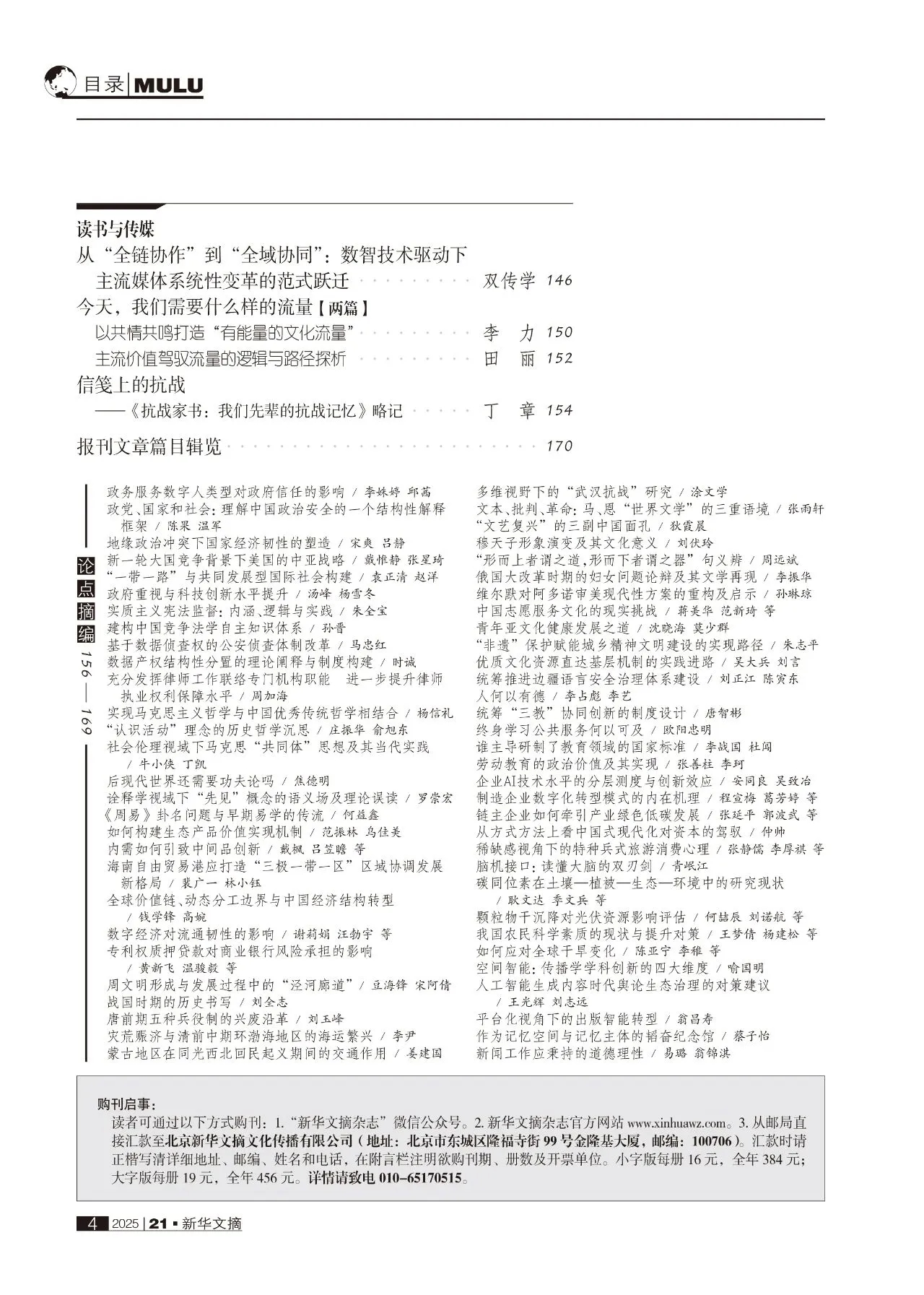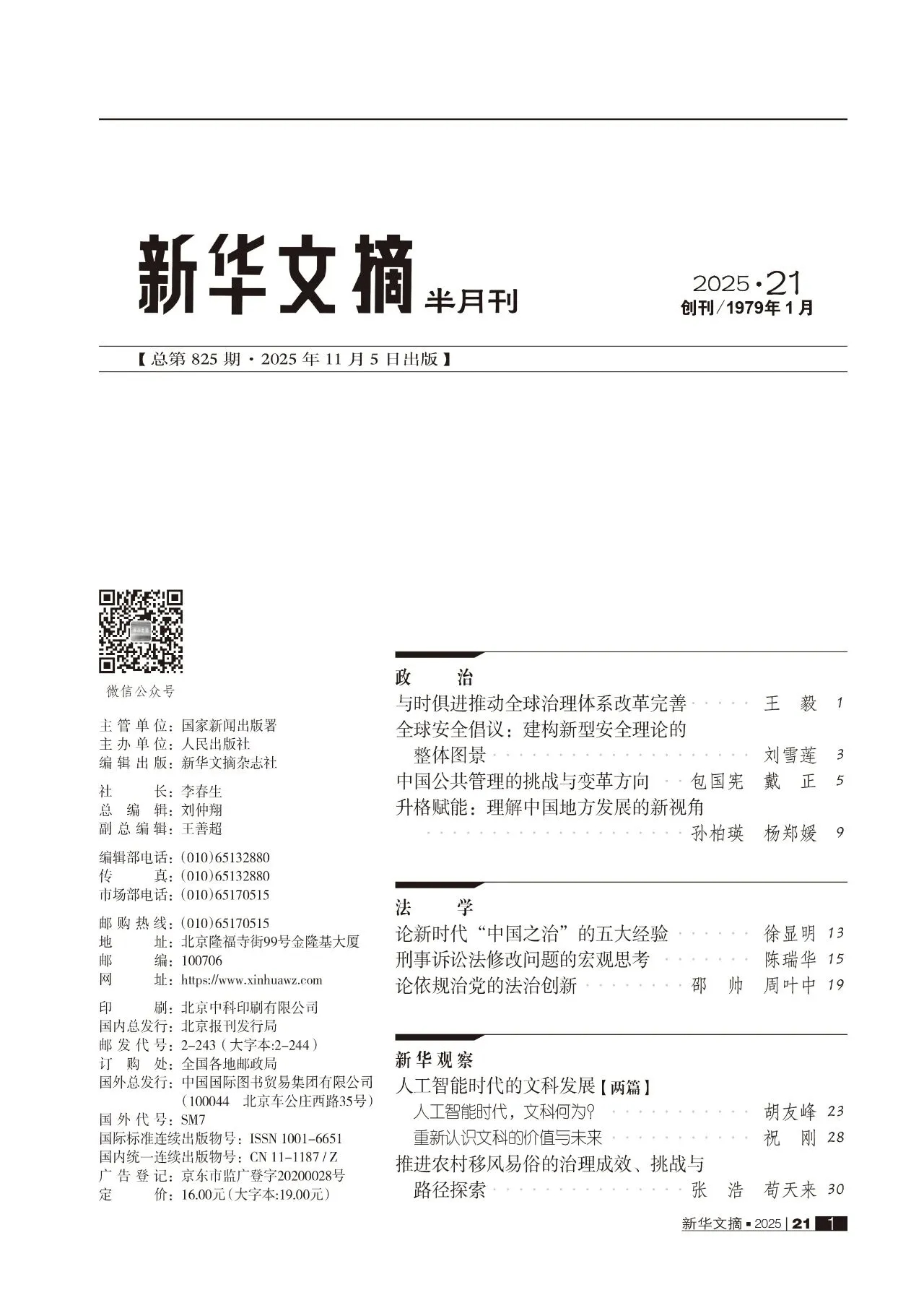 《新华文摘》是国家新闻出版署主管、人民出版社主办的综合性、学术性、资料性文摘,是国内最具权威性和影响力的学术文摘类出版物之一,以其权威性、思想性与可读性在海内外哲学社会科学领域享有盛誉,成为国内学术界的重要标杆。