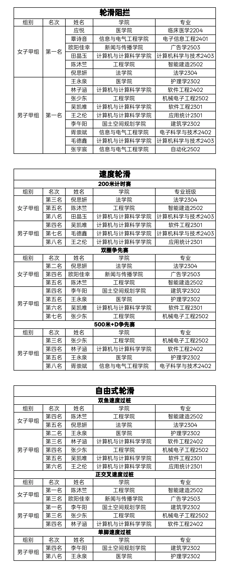 校轮滑队勇夺“钱塘杯”浙江高校公开赛多项冠军与团体总分第一