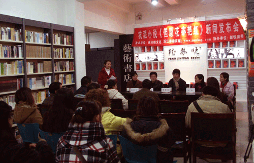 被业界誉为“青春作家”的浙江大学城市学院学生裘蓉康,最近发表了“杭派小说”新作《但愿花亦艳红》。12月24日,作者在杭州枫林晚书店举行了新闻发布会。城市学院院长鲁世杰向裘蓉康同学发去了贺信。(摄影:张斌)