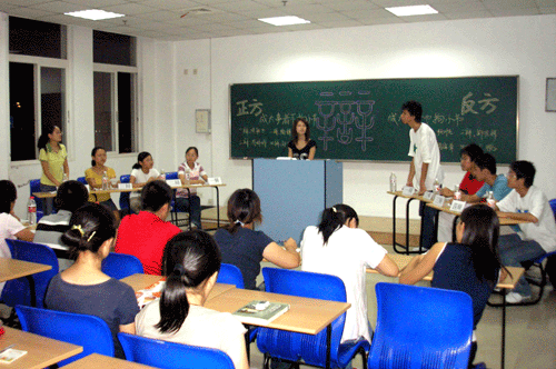 辩论赛上,双方辩手围绕酒香不怕(就怕)巷子深,成大事者不拘(也拘)小节,纪律会约束(促进)个性发展等几个经典辩题给出了自己精辟独到的观点,同时在辩论过程中,利用敏捷的思维抓住对方回答中的错误和漏洞进行反驳,真可谓是唇枪舌战。与此同时,辩手们也不失儒雅之风,沉着冷静,幽默风趣,不卑不亢,这种水火相融的辩论风格吸引着现场观众,迅速把气氛推向沸点。同样,评委精彩点评,也给同学们留下了深刻的印象。他们表示:虽然新生的辩论逻辑和经验稍显欠缺,但勇于表达自己的独特见解是很令人欣慰的。最后,在众人的翘首以盼中决出了比赛的胜负方,为新生辩论选拔赛拉上了帷幕。