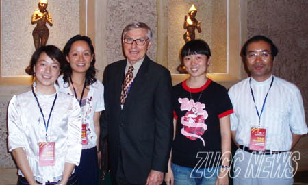 图为参会师生与世界休闲组织官员杰拉德先生合影留念。
