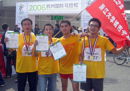 11月5日上午,城市学院翁春方、闻坚、童俊等11名同学参加了“2006杭州国际马拉松比赛”。经过