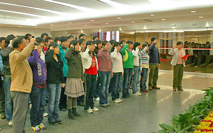 近日,计算学院学生支部45名新老党员,在党总支副书记刘明睿的带领下,参观了上海中共“一大”会址纪念馆,并举行了党员宣誓仪式。有着几十年党龄的组织员汪柏卿老师感慨万千,他动情地对同学们说:“虽然现在是和平年代,但作为一名党员,就必须要有党的觉悟,无论做什么,都要有颗爱国心,都必须以身作则,冲在人民队伍的最前头。”