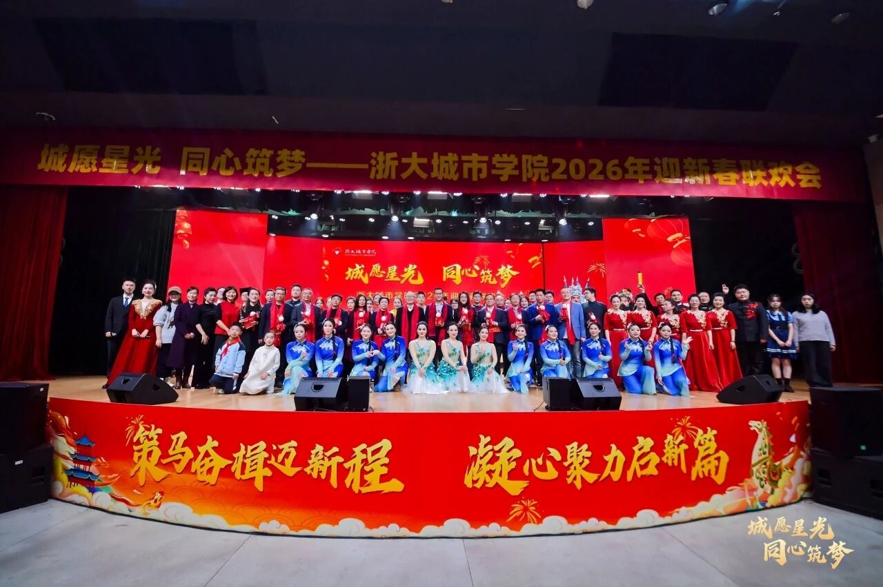 金马扬蹄启新程,弦歌不辍筑新篇。1月26日晚“城院星光·同心筑梦”浙大城市学院2026年迎新春联欢会在图信报告厅温情启幕。教职员工欢聚一堂以歌为媒、以舞传情,在辞旧迎新的美好时刻共忆耕耘岁月、共绘发展蓝图。联欢会在声乐协会深情演绎的《国家》中拉开序幕。悠扬旋律饱含着滚烫的家国情怀,一开口便点燃全场炽热氛围。校党委书记董悦在致辞中向社会各界的关心支持表示衷心的感谢。向全校师生员工致以诚挚的问候与美好祝福...